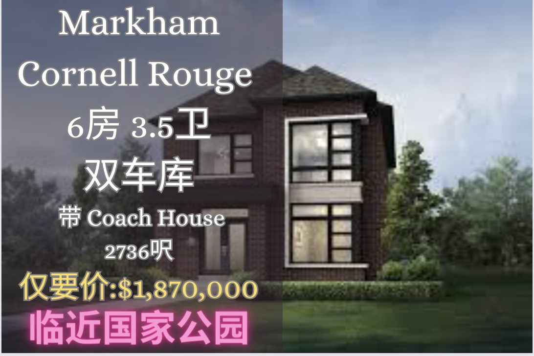 万景独立屋亏转 — Cornell Rouge 6睡房 3.5卫 带Coach House 2700余呎‼️‼️ 带升级仅要价 1.87 mill 临近国家公园 轻松抵达 高速 hwy7 407