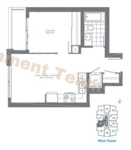 1房 1卫 ,505尺, 朝西,1车位 ,1locker