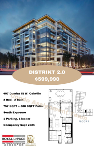 多伦多奥克维尔最受欢迎社区 Distrikt 2.0 2房 757呎+ 500呎平台 仅要价$59万!