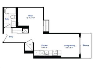 户型:Jr. 一卧 | 一卫,455平方英尺,包含一locker