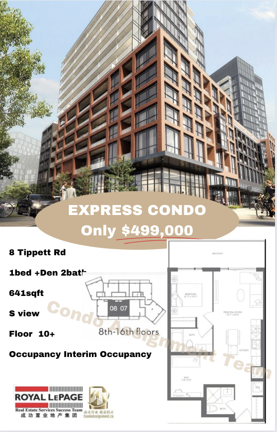 捡漏咯[庆祝] 北约克Express 公寓楼花转让:现房 小两房+两卫 641呎再加宽敞阳台!!! 现仅要价$499,000!!! 临近Yorkdale 步行前往TTC 地铁站!临近高速,四通八达!机会有限,买到就是赚到