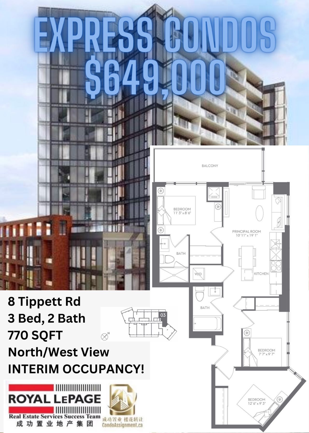 楼花转让:北约克-Express 公寓楼-高层公寓-$842/sqft- 平价转!!! 仅要价 $649,000
