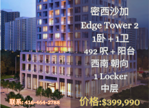 密西沙加中心Edge Tower最新楼花,1bed+1bat,西南朝向,500平方英尺坐拥密西沙加市中心豪华风光!