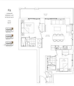 面积:714平方英尺 + 134平方英尺阳台
